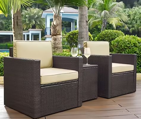 セット 3 PCS ガーデンラタン 家具 ストーン ワイカー 屋外 ラタン ソファ セット 庭園用